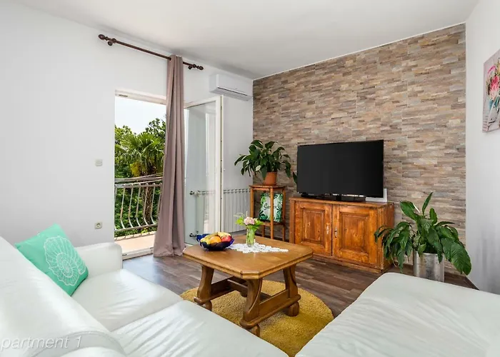 Along with coffee/tea making machines, self-catering facilities in a shared kitchen include a fridge, an oven, and kitchenware. The closest bus stop is Konjsko B, which is 250 metres away. This accommodation boasts access to an aqua park and a sundeck, as well as a sunny patio with views of the sea.
